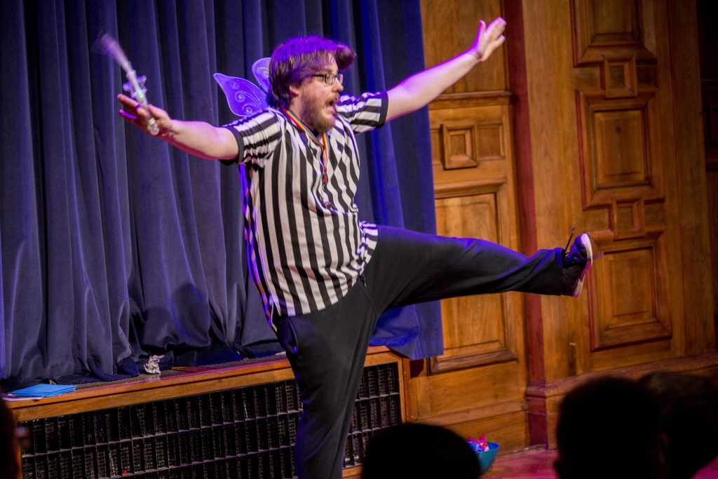 Our improvised pantomimes are a loving pastiche of traditional panto tropes and characters and alternative to the same old stories. Players don't know which character they're going to be play or what the story is going to be about as our fairy god-referees take suggestions from the audience. We will have live musical accompaniment for this year's shows as well which is something we've wanted for a while!